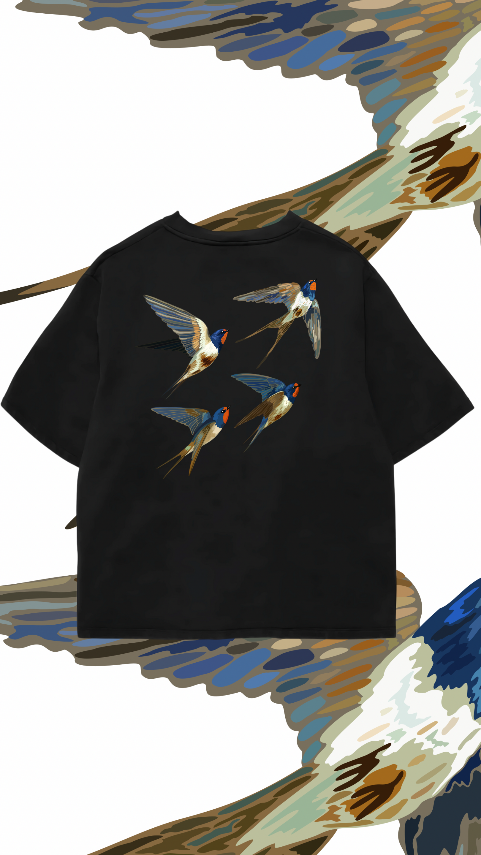 Crafted from our signature 240GSM premium cotton, the White Montane Swallow T-shirt combines comfort, structure, and contemporary design. Featuring a dynamic bird-in-motion graphic, it symbolizes freedom and forward movement — perfect for those who never stand still.