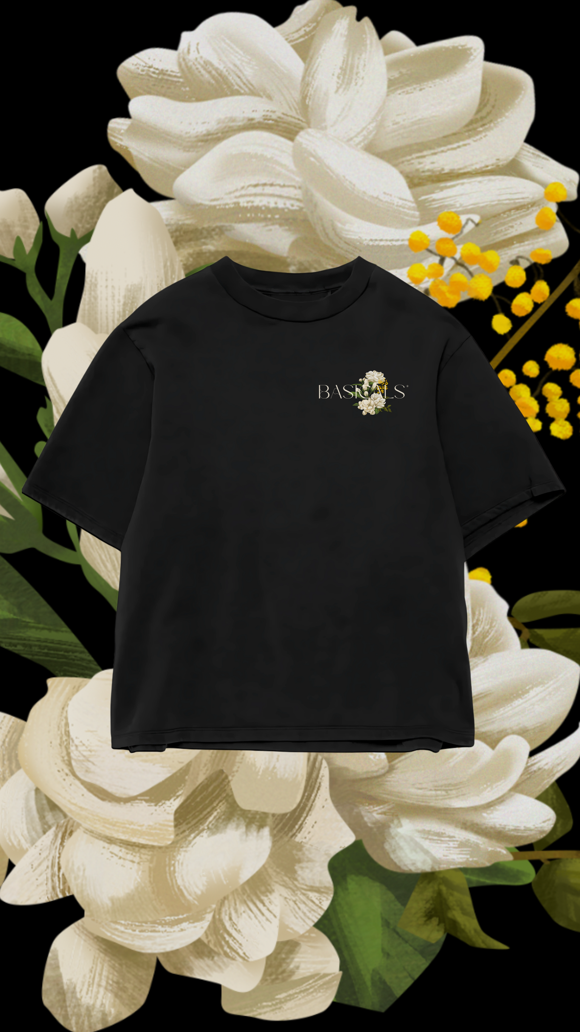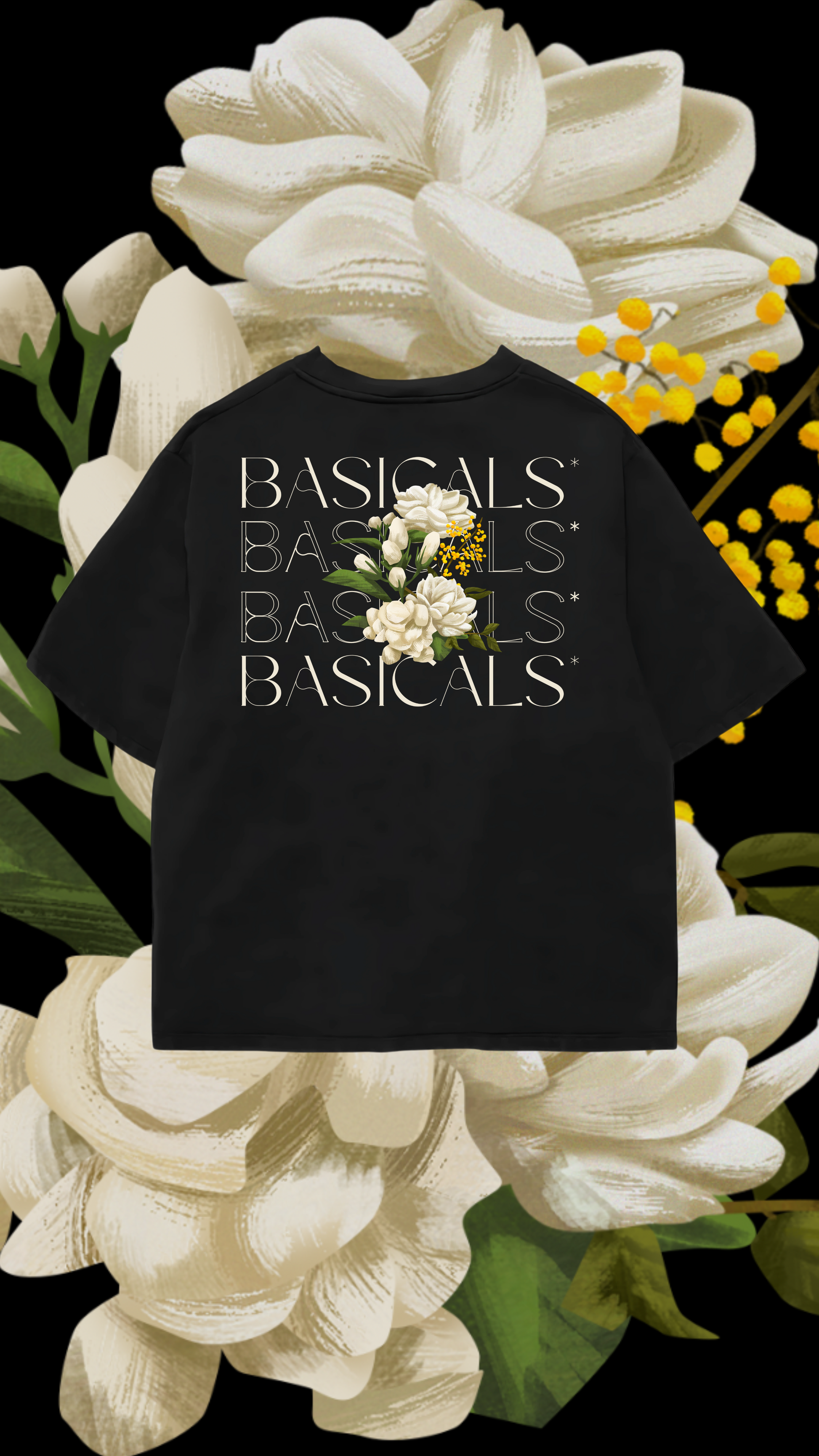The blend of soft botanical elements with bold structured type creates a contrast that defines The Basicals aesthetic — clean, contemporary, and emotionally intelligent. This piece isn’t just streetwear; it’s wearable art that speaks to calm confidence and timeless sensibility.