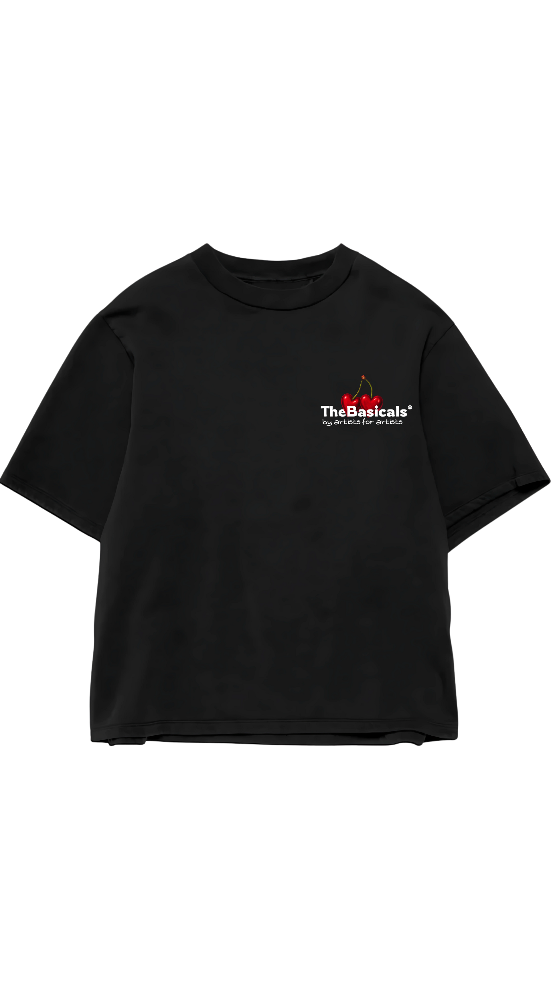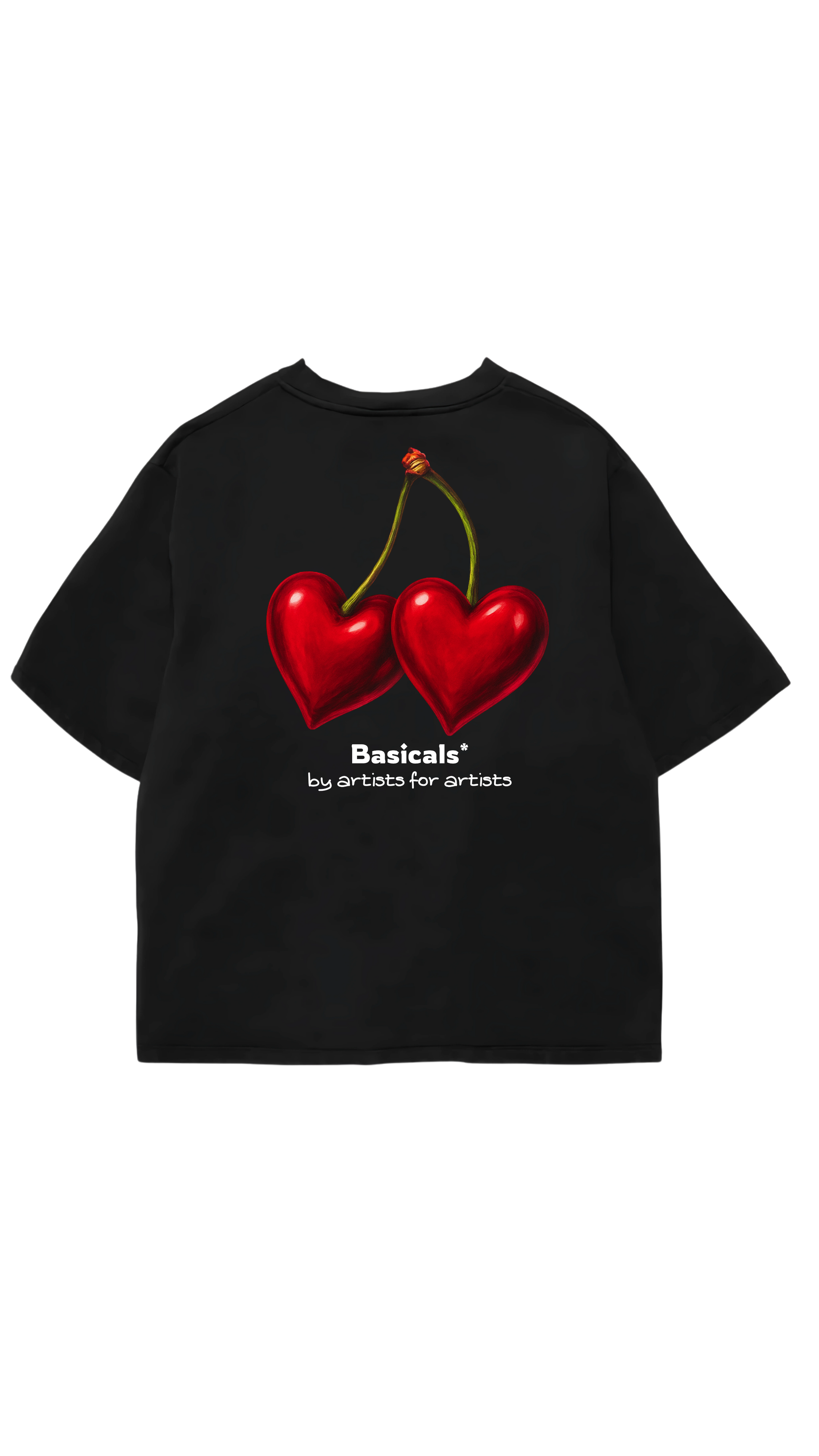 The statement back graphic — two sculpted red hearts intertwined by stems — embodies the brand’s signature blend of emotion and design. Subtle front detailing showcases The Basicals’ logo with the defining ethos: “by artists for artists.” Each element is meticulously printed to achieve depth and vibrancy while maintaining a refined finish.